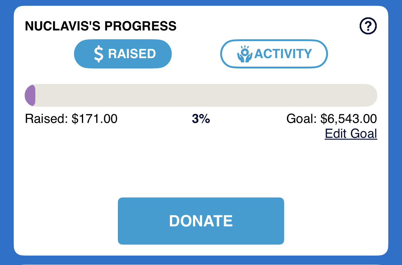 The “Donation” button on the Overview page is designed to make fundraising easier for participants. Only certain organizations choose to enable this feature. When available, the button links directly to the participant’s fundraising page, providing a quick and convenient way for donors or the participant themselves—to make a contribution.